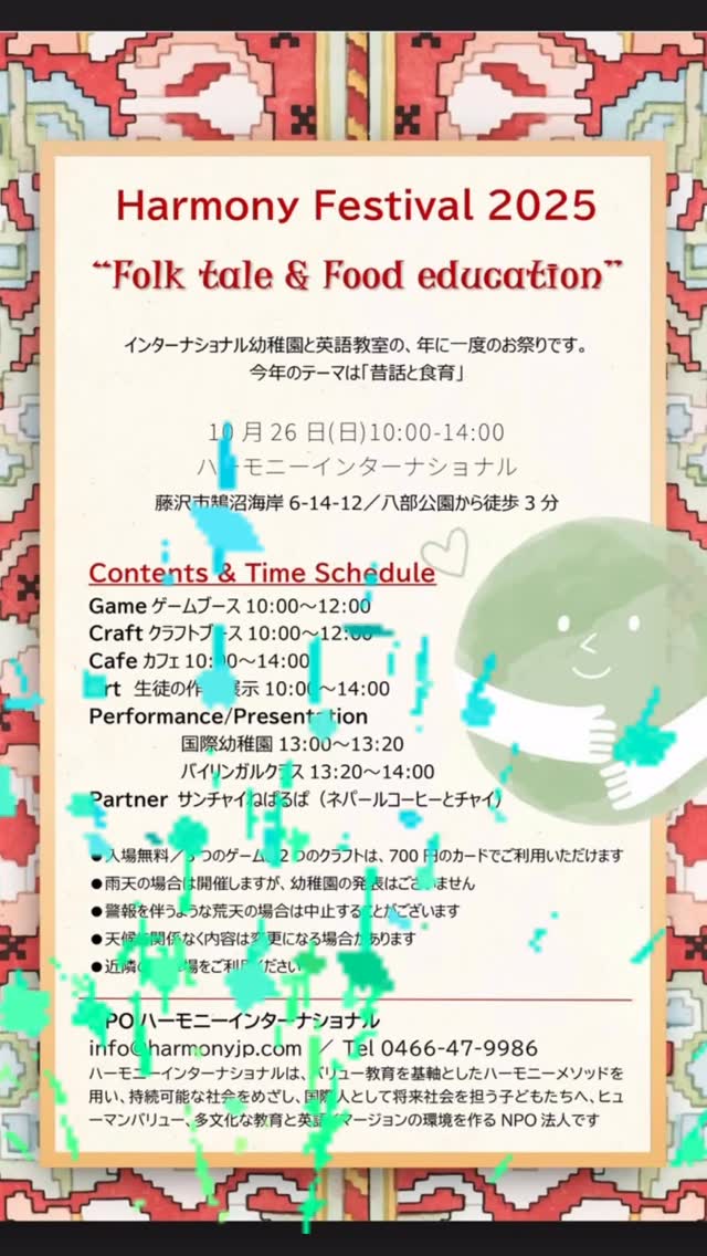 #ハーモニーインターナショナルスクール #英語学校 #藤沢 #internationalschool #幼児英語 #英語教育 #英語教室 #リアル英語 #英語学習 #幼稚園 #バイリンガル #kidsenglish #preschool #多文化 #バリュー教育 #モンテッソーリ #ネイティブ