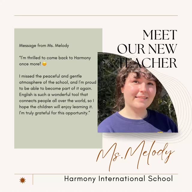We are delighted to announce that Ms. Melody, a former teacher at Harmony, has returned to our team!